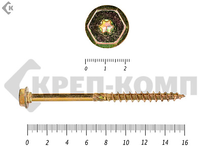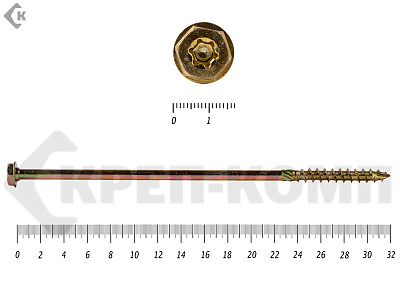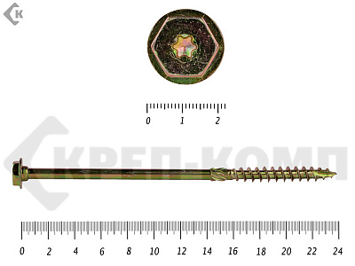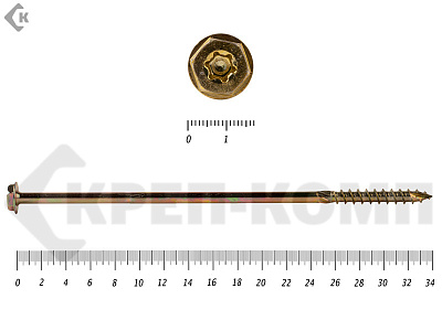 Саморезы по дереву желтые, шестигранные Torx 8х260 мм КРЕП-КОМП (50 шт)