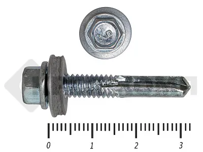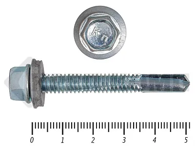 Саморезы кровельные по металлу с удлиненным (усиленным) сверлом РТ-5 имеют шестигранную головку, шайбу с EPDM резинкой, увеличенное сверло (удлиненное 15 мм.) покрытие цинк. Более удлиненное сверло чем у других кровельных саморезов по металлу, дает возможность гарантированно просверливать металл толщиной до 12 мм !