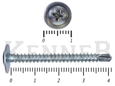 Данные саморезы имеют плоскую шляпку с шлицом под насадку Ph2. Они делятся на две основные группы: