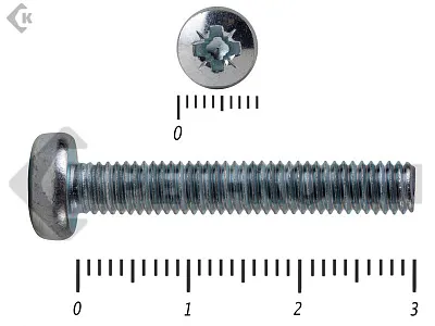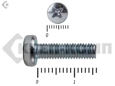 Винт DIN 7985 представляет собой цилиндрический стержень с нарезанной метрической резьбой и головкой на одном конце, которая снабжена шлицем, применяемым для передачи крутящего момента. Используется для крепления материалов и частей конструкции к основанию. За счет линзообразной головки цилиндрической формы на винт можно приложить значительное усилие при затяжке, что гарантирует прочную и надежную установку.