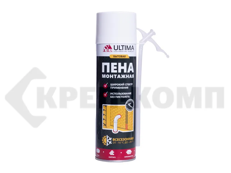 Пена монтажная бытовая, полиуретан. 340мл, ВСЕСЕЗОННАЯ, от -10 °С до +30 °С, ULTIMA (шт.)